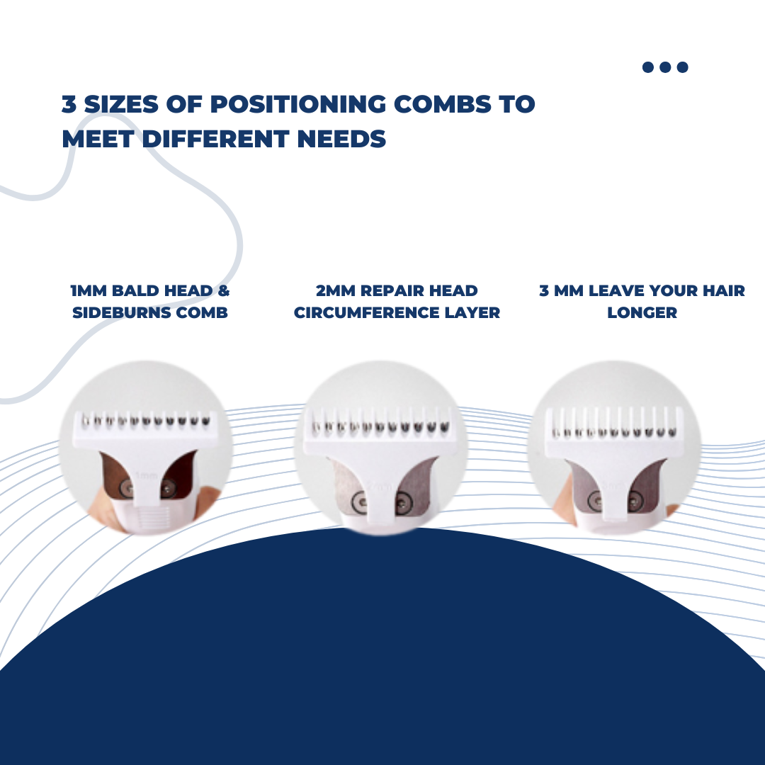 📏 3 Positioning Combs: Comes with 1mm, 2mm, and 3mm combs for versatile styling.