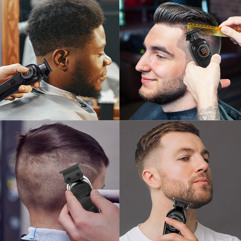 A professional-grade engraving and trimming hair clipper featuring a high-performance DLC (Diamond-Like Carbon) cutter head for rapid, snag-free cutting. Designed for achieving the perfect retro oil head, intricate engraving patterns, and crisp gradient and push white bald head styles. It offers the ultimate convenience with Type-C fast charging, a clear LED display, and a long-lasting 1500mAh battery providing 180 minutes of runtime.