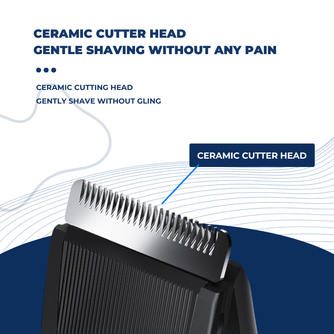 ⚪ Ceramic Blades/Cutting Head: Provides a gentle shave without stinging or irritation.