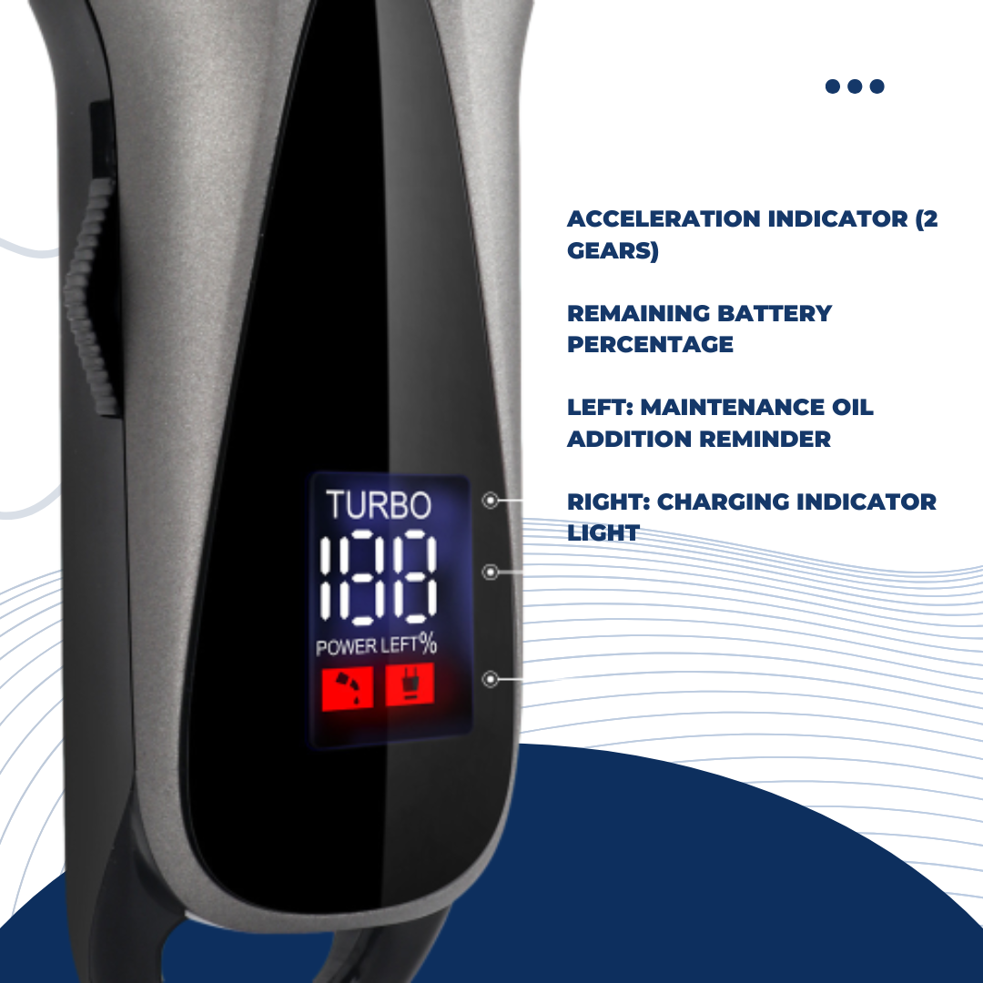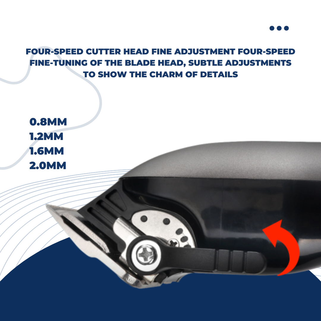 The Shasoul Retro Fine-Tuner is a stylish and high-performance hair clipper designed for precision and control. Its LCD display provides a comprehensive overview of the device's status, including the remaining battery percentage, acceleration indicator, and helpful reminders for maintenance oil and charging. The standout feature is the four-speed fine-tuning adjustment on the cutter head, allowing you to choose from 0.8mm, 1.2mm, 1.6mm, and 2.0mm for subtle and detailed styling. With a 2-gear power acceleration mode, this retro-inspired clipper delivers a strong, consistent performance. A long-lasting battery provides 3-4 hours of use on a single charge, and the fast-charging technology ensures minimal downtime.